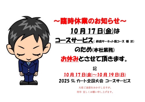 今週末は2025 SLカートミーティング全国大会 のコースサービスです。